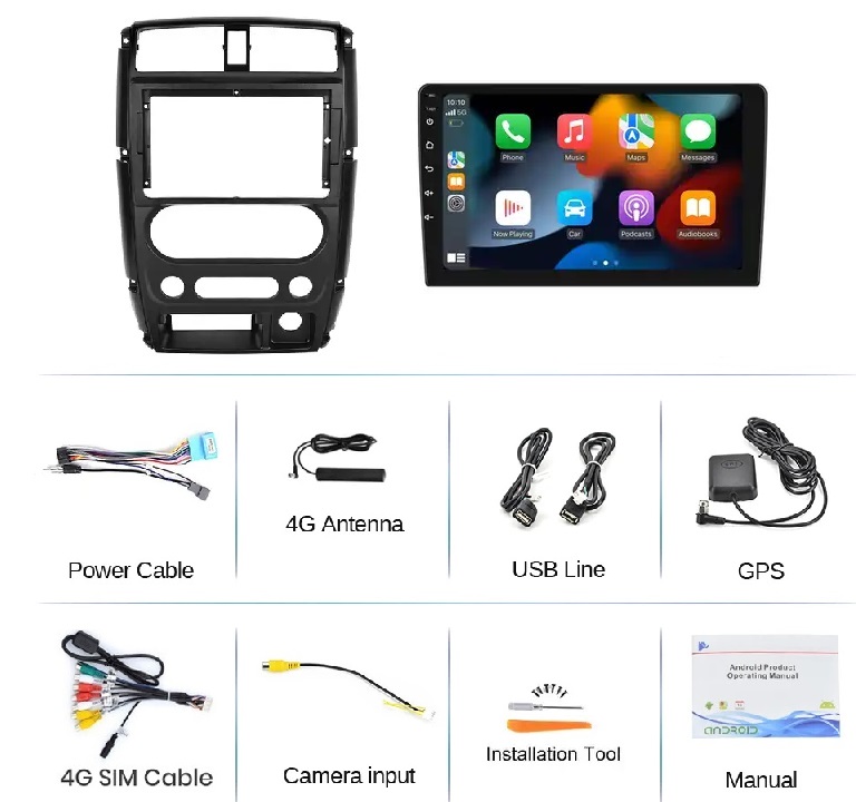Navigatie Suzuki Jimmy 2005-2018, 9″ IPS, 2+32GB Octa-core 1.6Ghz, CarPlay, Android 4G, DSP